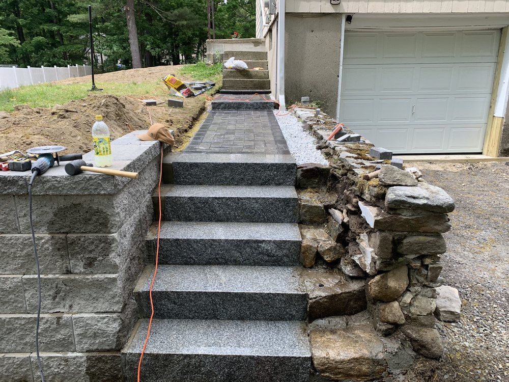 Have a level change in your property that requires new stairs in addition to your walkway? Our expert hardscaping team can help install a new set of stone stairs to give your property that special touch. We work with all different types of materials, including granite. Check out some of our work below and be sure to give us a call if you're thinking of installing a new set of stone stairs on your property!